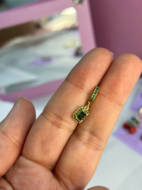 Argolla de acero dorado importado con cubic en argolla y cubic mediano colgante.