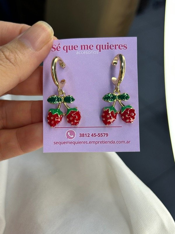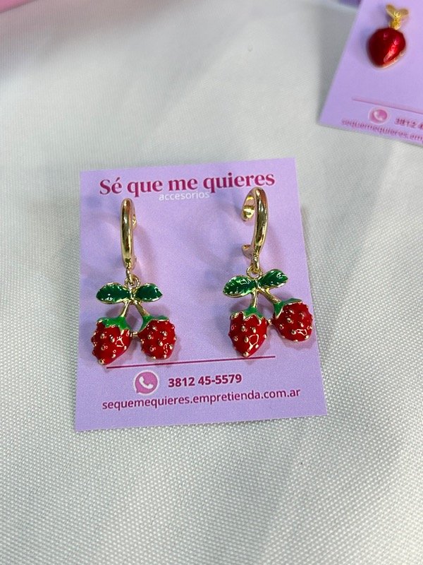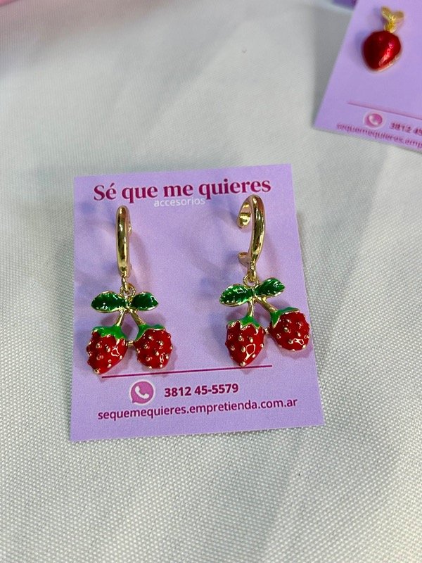 Argolla con frutilla colgando x 2 , importada y pintada