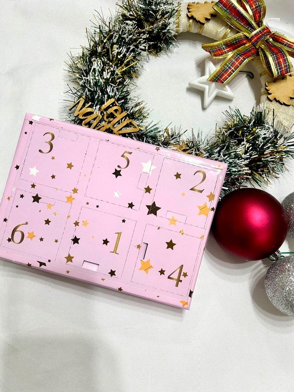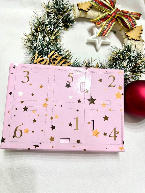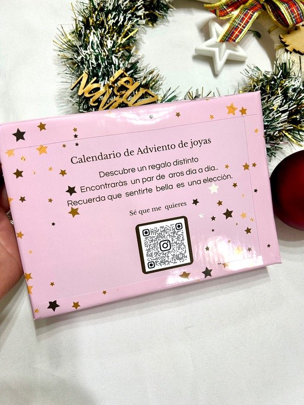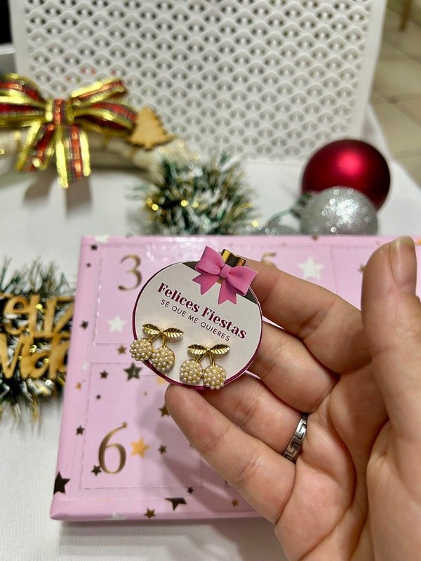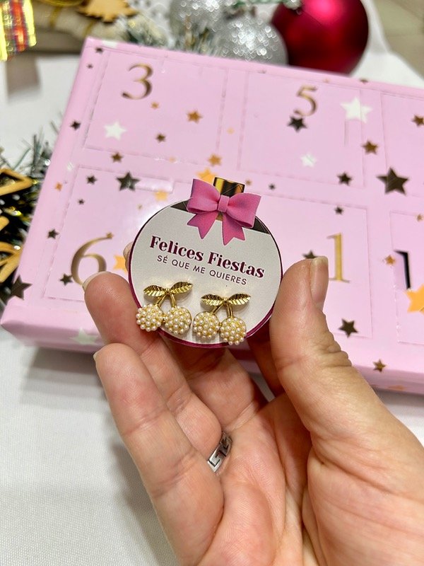 Calendario de Joyas que incluye 6 pares de aros de acero quirúrgico, acero blanco y acero dorado, de hermosa calidad y duración.
